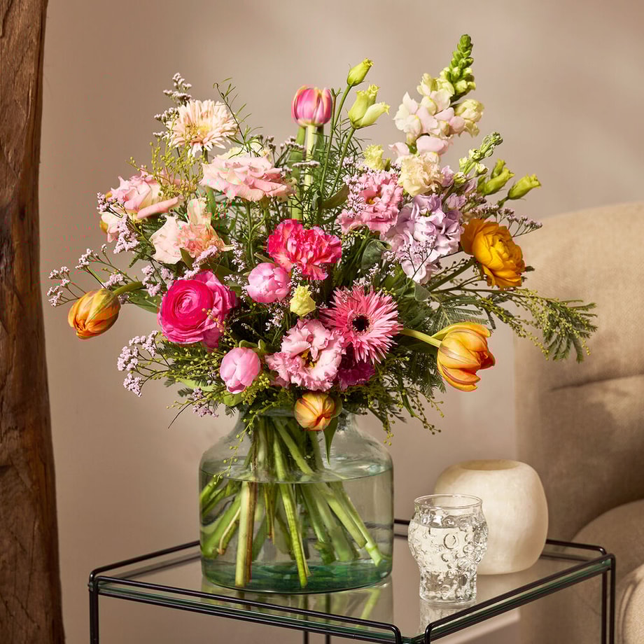 Lees meerDeze vrolijke eyecatcher fleurt iedereen op. Boeket Lentepracht bevat de mooiste, dagverse seizoensbloemen, zorgvuldig gebonden in een compacte, ronde stijl. De liefdevolle tinten maken van dit boeket een absolute favoriet. Plaats dit boeket op een prominente plek en geniet elke dag van de warmte en vreugde van het voorjaar.